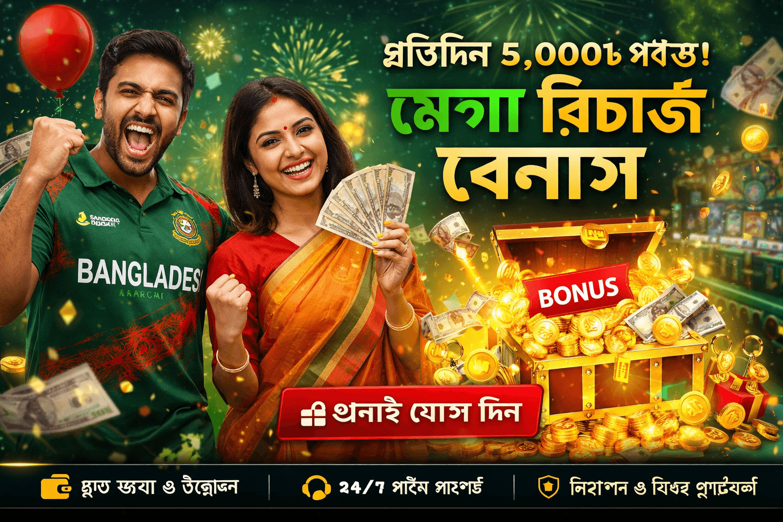 সকল বোনাস অফারের নির্দিষ্ট ওয়েজারিং রিকোয়ারমেন্ট রয়েছে। বোনাস গ্রহণের আগে সম্পূর্ণ শর্তাবলী পড়ে নেওয়ার পরামর্শ দেওয়া হয়। বিস্তারিত জানতে প্রমোশন পেজ দেখুন।